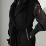 Vest made of winter fabric featuring a notch lapel collar, front slanted patch pockets decorated with dark gold French trim, and a waist belt. A versatile must-have piece for your wardrobe. Warm and stylish — easily pairs with shirts or tops. Perfect for all-day wear.